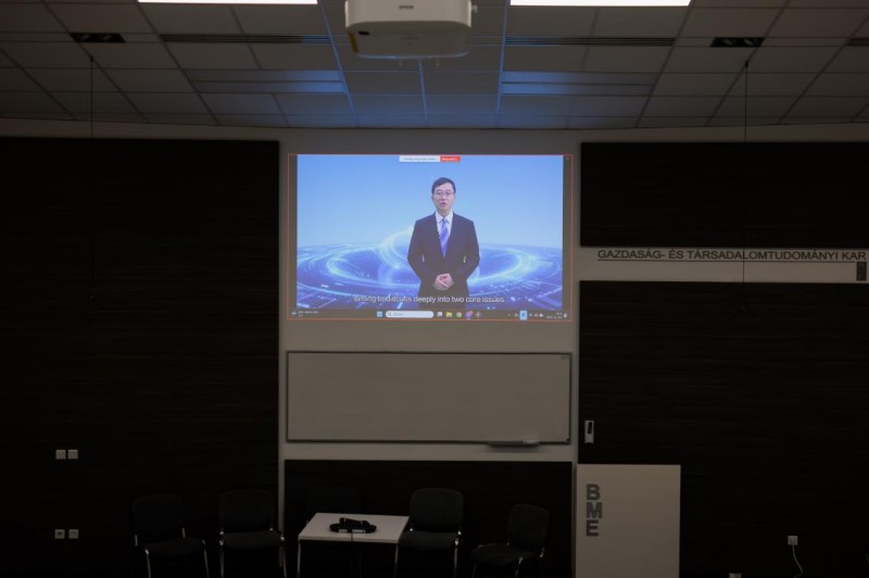 朱凯代表东北财经大学发表视频致辞,对论坛的召开表示热烈祝贺。他表示,当前我们正处在一个人工智能迅猛发展的历史性阶段,AI不仅重塑人类认知世界的方式,也在深刻改变知识传授与教学组织的形态。本次论坛聚焦教育工作者与行业实践者共同关切的核心议题,不仅深化了东北财经大学与布达佩斯技术与经济大学的校际合作,更创新构建了“高校—高校—企业”三方联动的国际合作机制,对培养面向未来的国际化创新型人才具有重要推动意义。